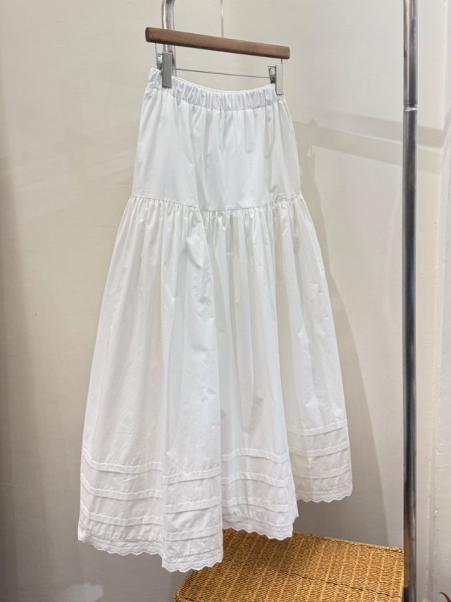 SK001-OLI 設計師純白棉質蕾絲邊百褶裙