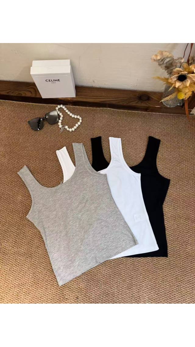 Top60331005 靚料純棉大牌手工闊肩帶U領背心