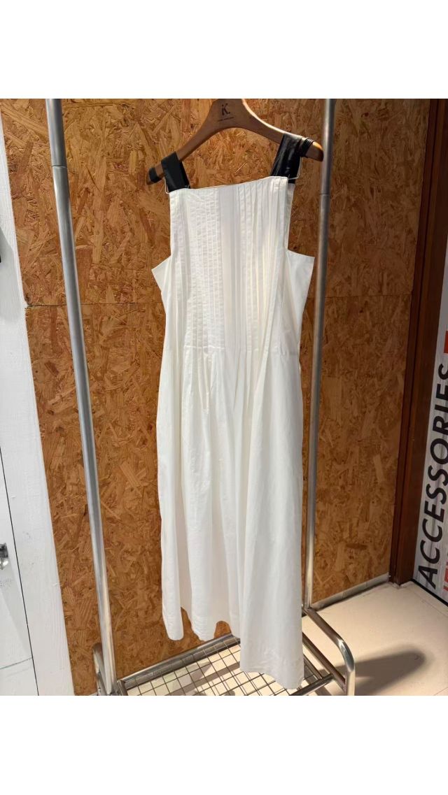 Op60331007 寬肩帶壓褶無袖連衣裙