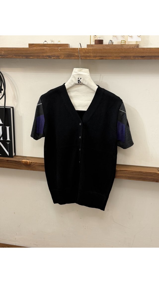 KN60401001 菱格撞色短袖針織開衫
