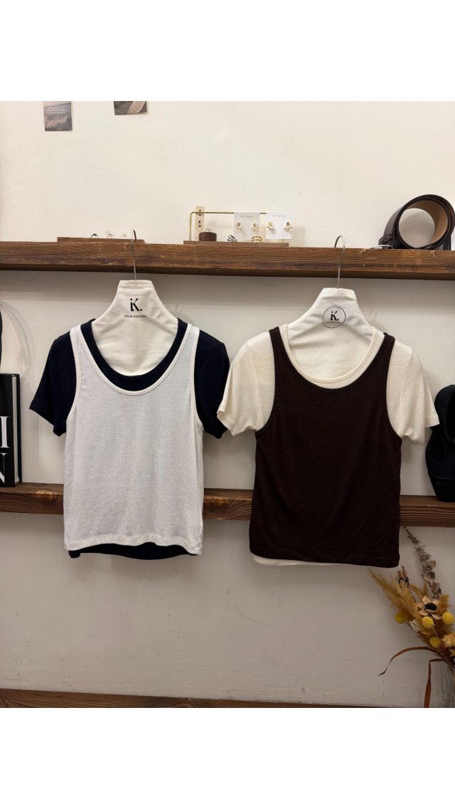 Top set60401002 撞色疊穿背心T恤兩件套