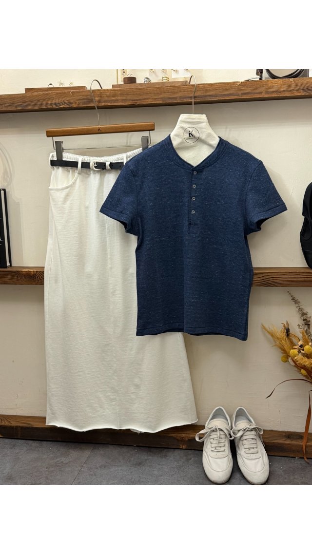 Top60401004 亨利領華夫格高級質感短袖 T 恤