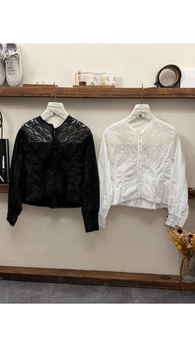 Top60401007 法式復古蕾絲拼接長袖襯衫
