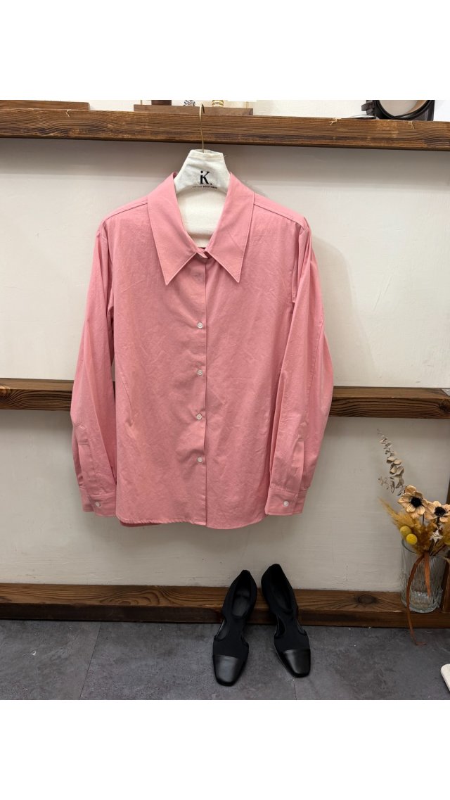 Top60401008 溫柔顯白質感透氣尖領長袖襯衫