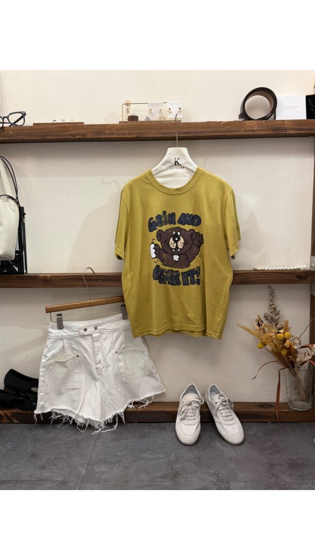 Top60403001 復古做舊小熊印花T恤