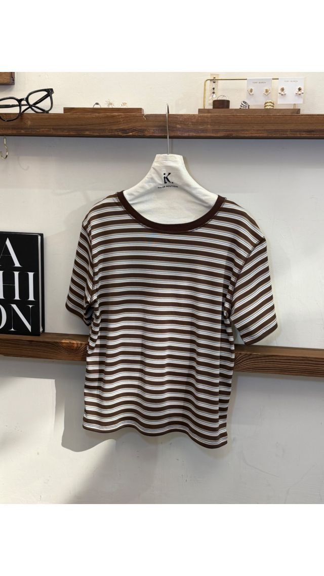 Top60403003 復古撞色條紋圓領短袖T恤