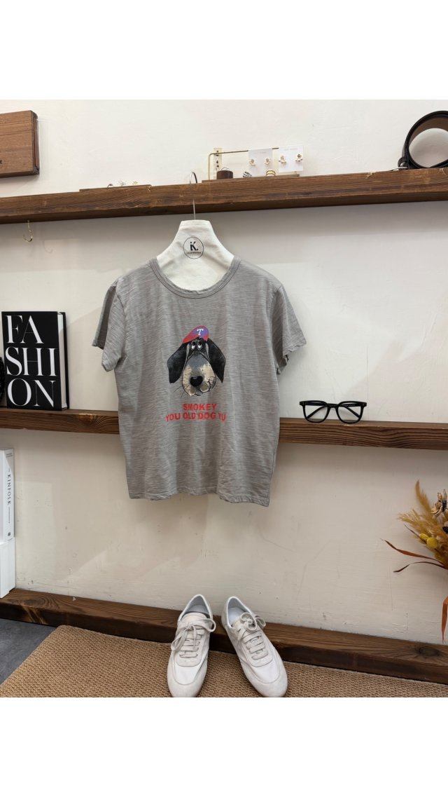 Top60403004 復古做舊卡通臘腸狗印花短袖T恤
