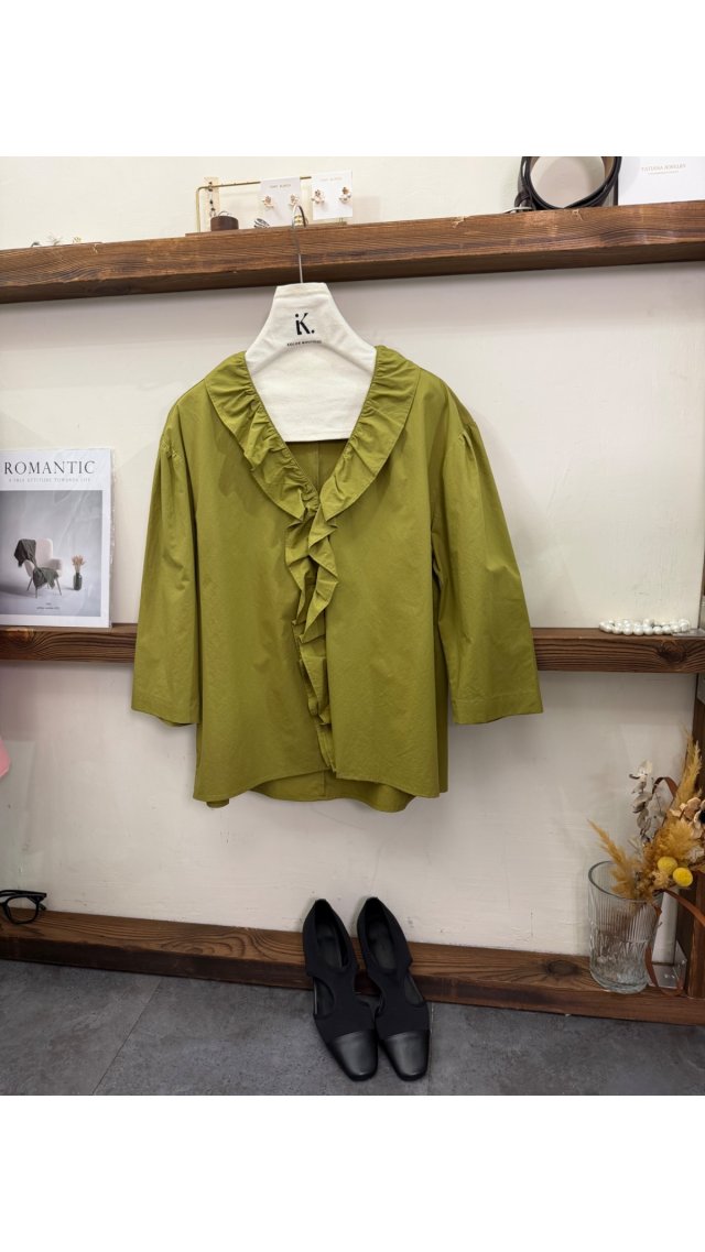 Top60404001 法式溫柔荷葉邊 V 領七分袖襯衫