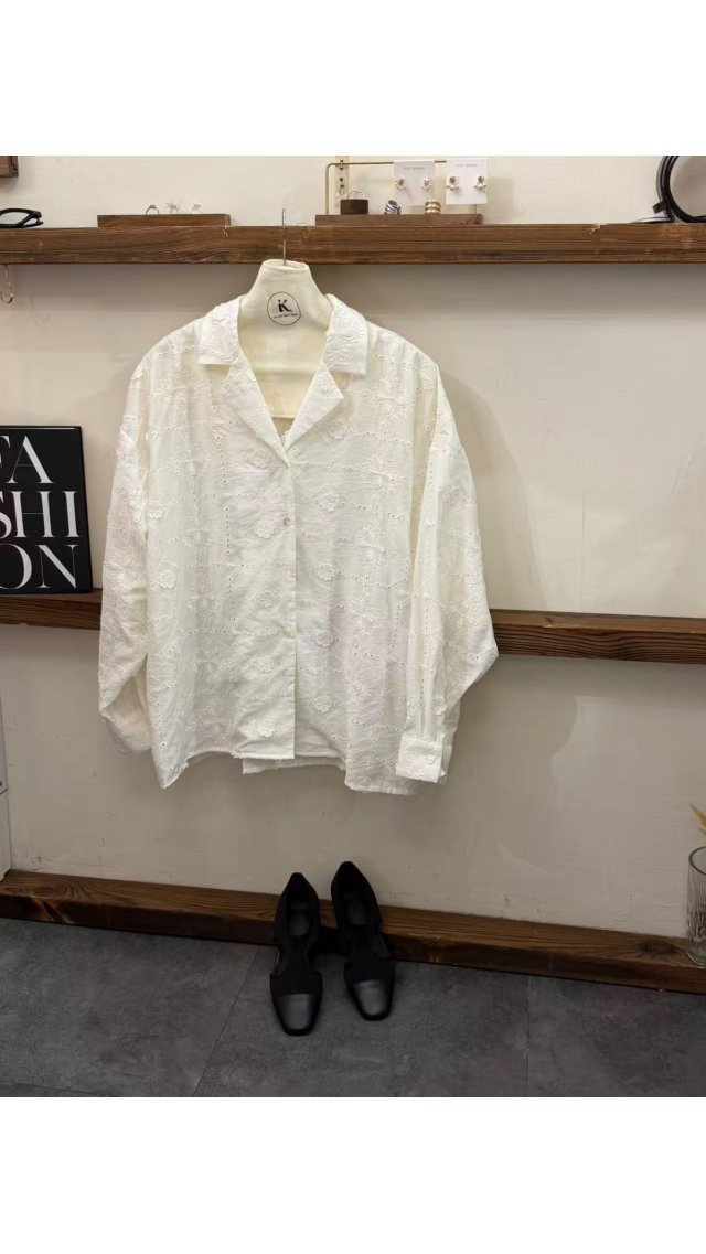 Top60404006 立體花卉鏤空精致刺繡襯衫