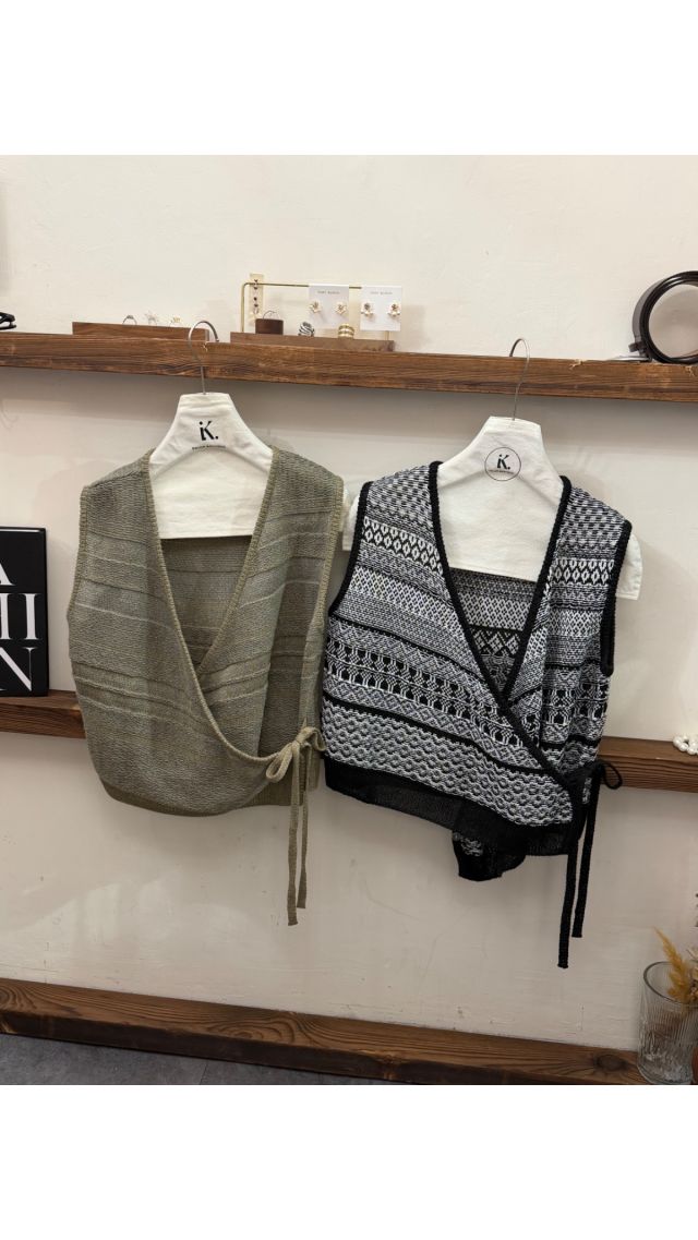 Kn60404009 復古慵懶不對稱繫帶 V 領針織馬甲
