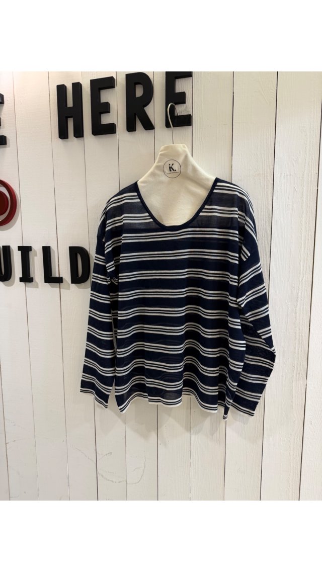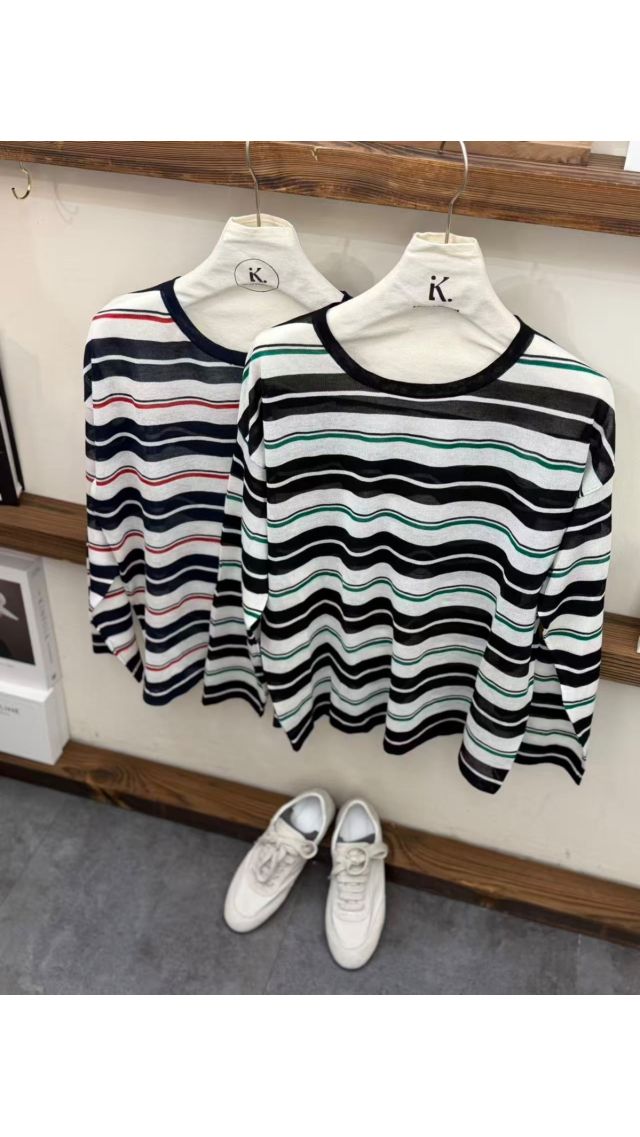 Kn60406005 寬鬆撞色條紋透氣長袖針織衫