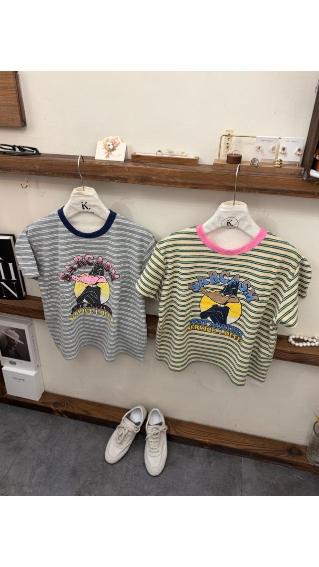 Top60406006 卡通印花條紋短袖 T 恤