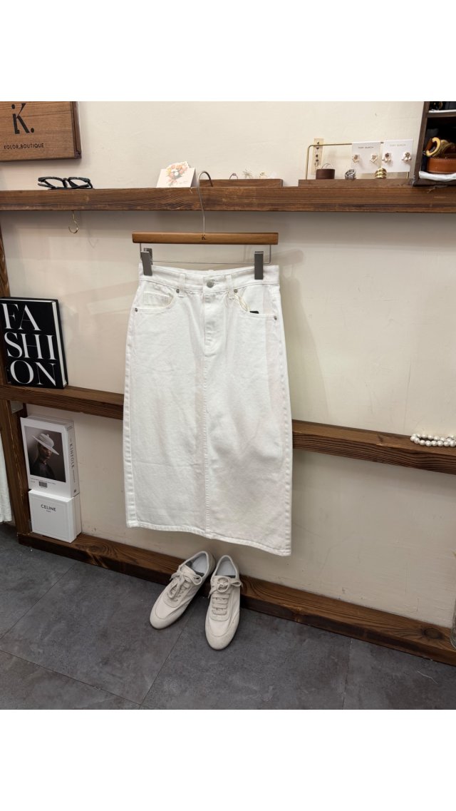 Sk60406009 經典百搭白色直筒開叉牛仔半身裙