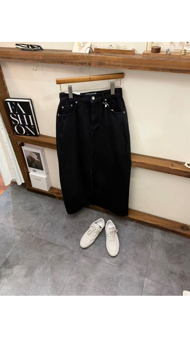 Sk60406010 酷颯顯瘦黑色直筒開叉牛仔半身裙