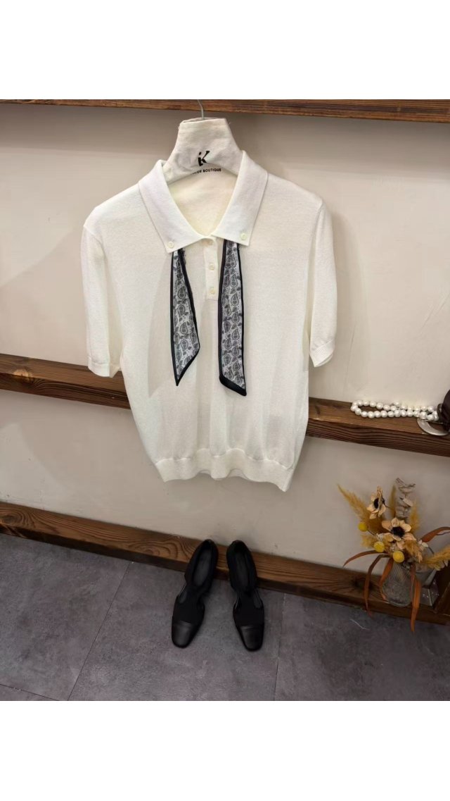 Kn60406011 法式優雅飄帶 Polo 領針織衫