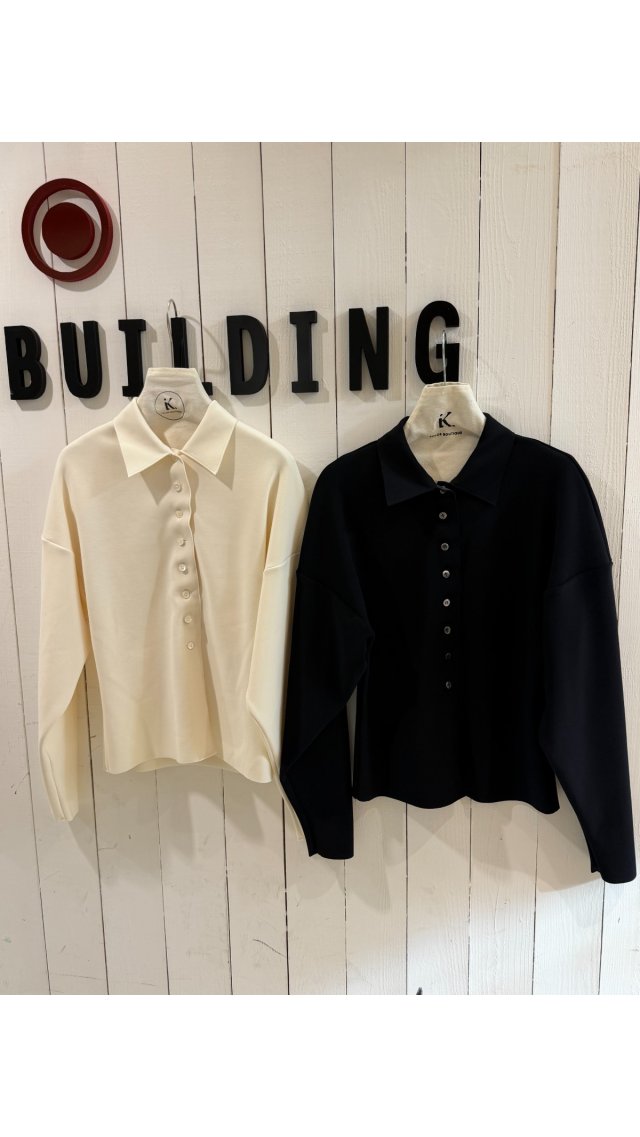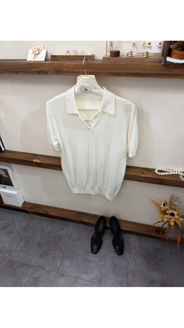 Kn60406019 簡約高級感白色 Polo 領針織衫