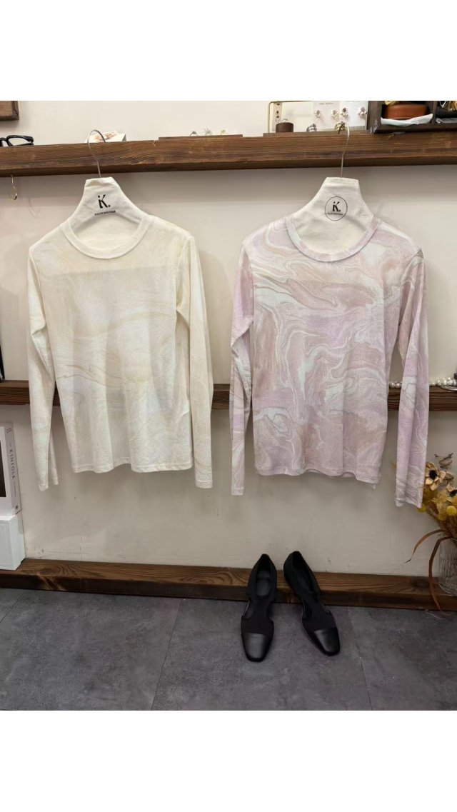 Top60406017 高級感大理石紋透氣長袖打底T恤