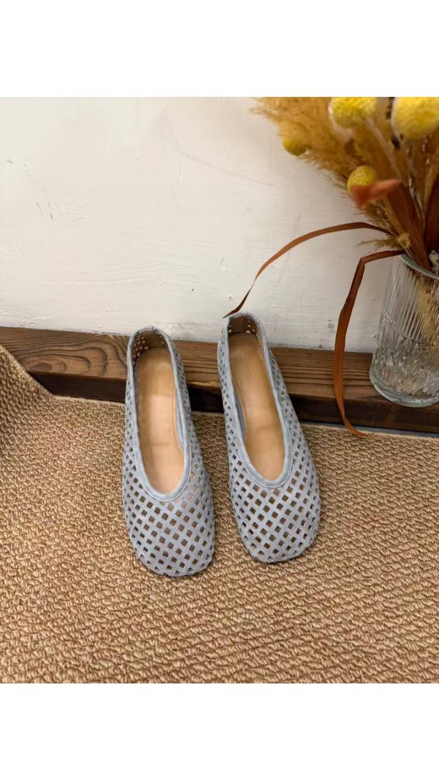 Sh60407001 透氣網格淺灰色方頭單鞋