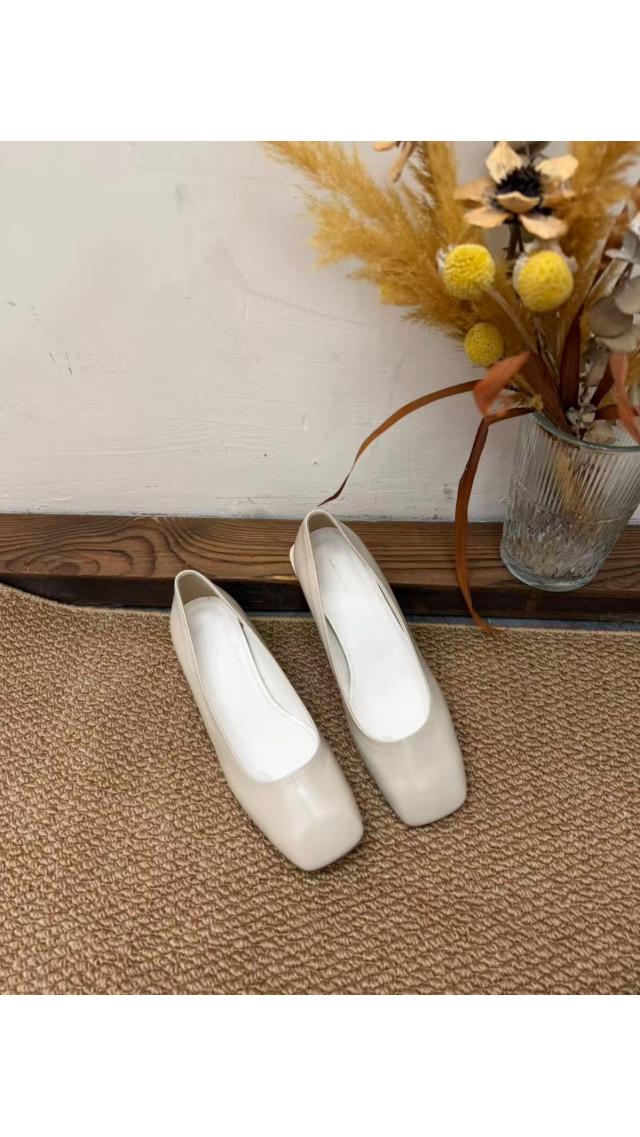 Sh60407003 簡約高級感灰白色方頭粗跟單鞋