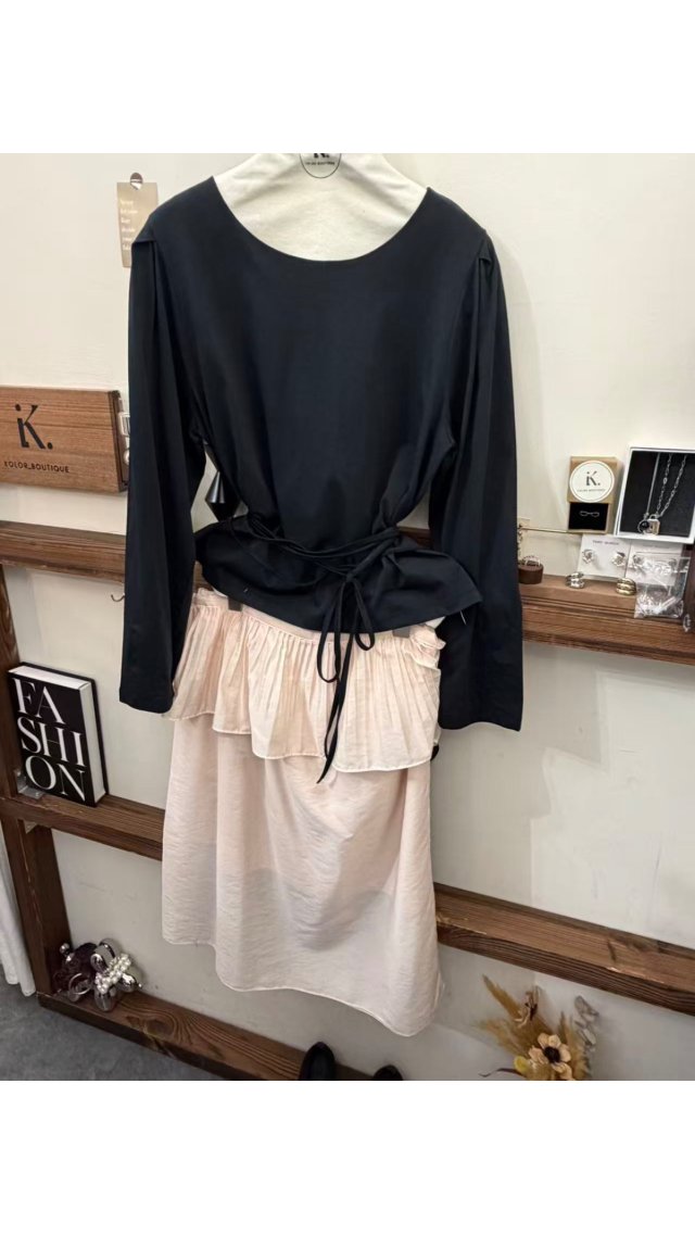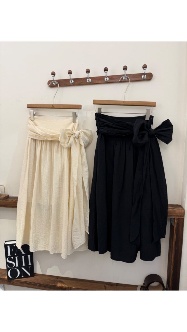 SK60416007 法式浪漫腰封綁帶皺感 A 字半身裙