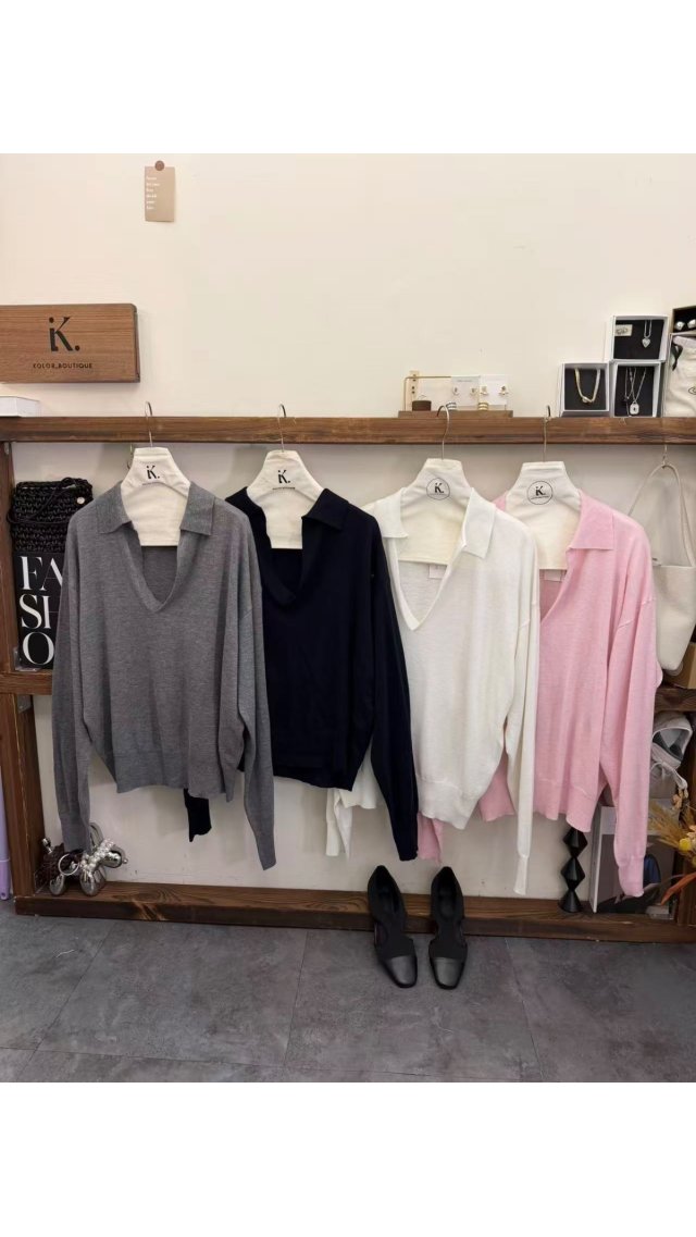 Top60410003 輕薄透氣 Polo 領 V 領針織衫