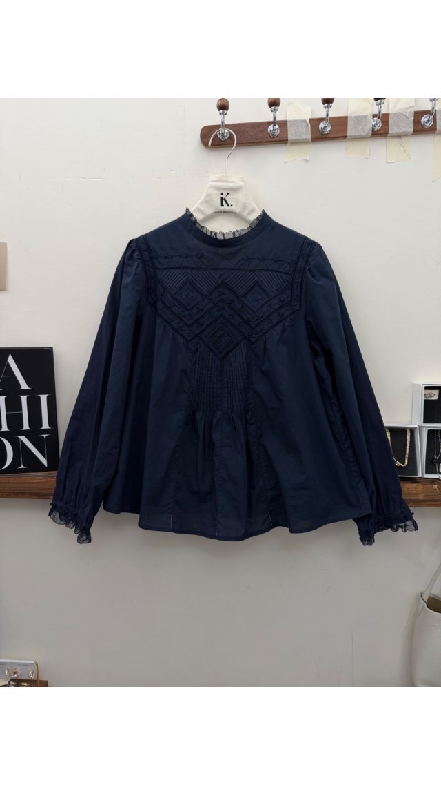 Top60410007 法式復古蕾絲立領刺繡長袖上衣