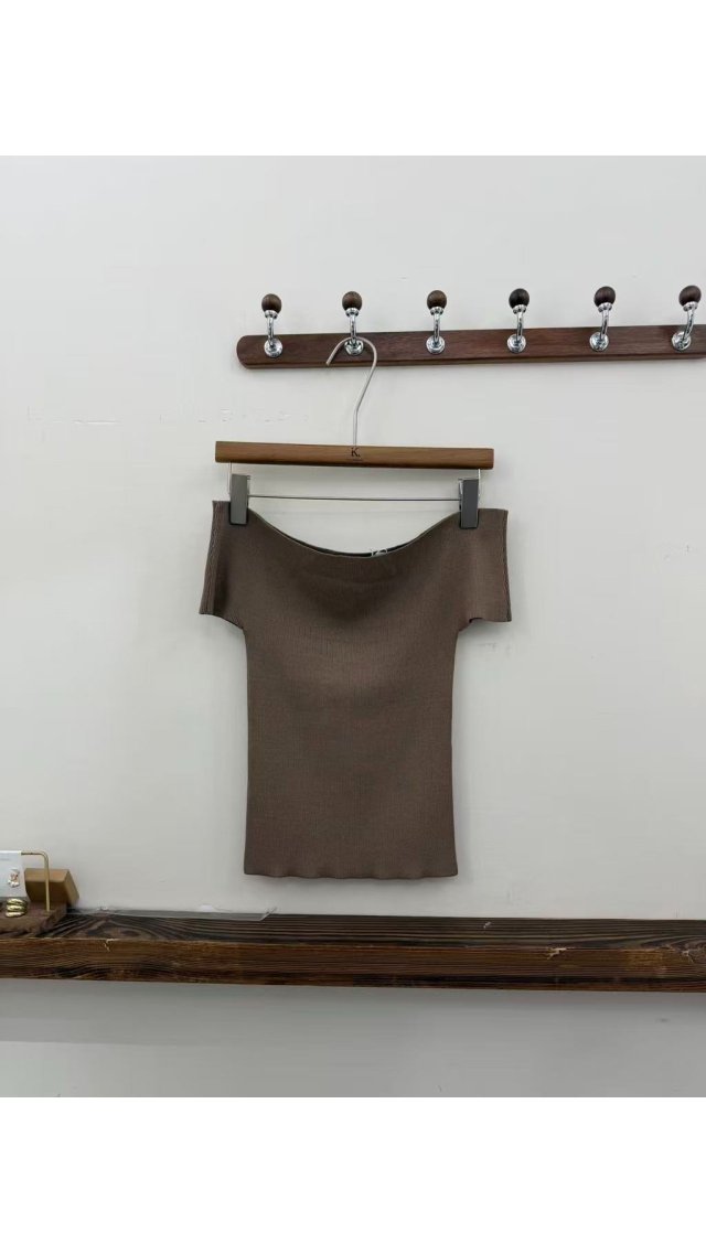 KN60414004 性感露肩一字領坑條針織 T 恤