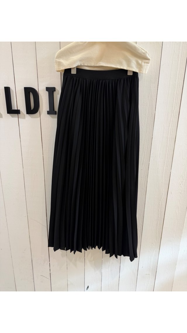SK60415003 經典黑色垂墜百褶中長裙