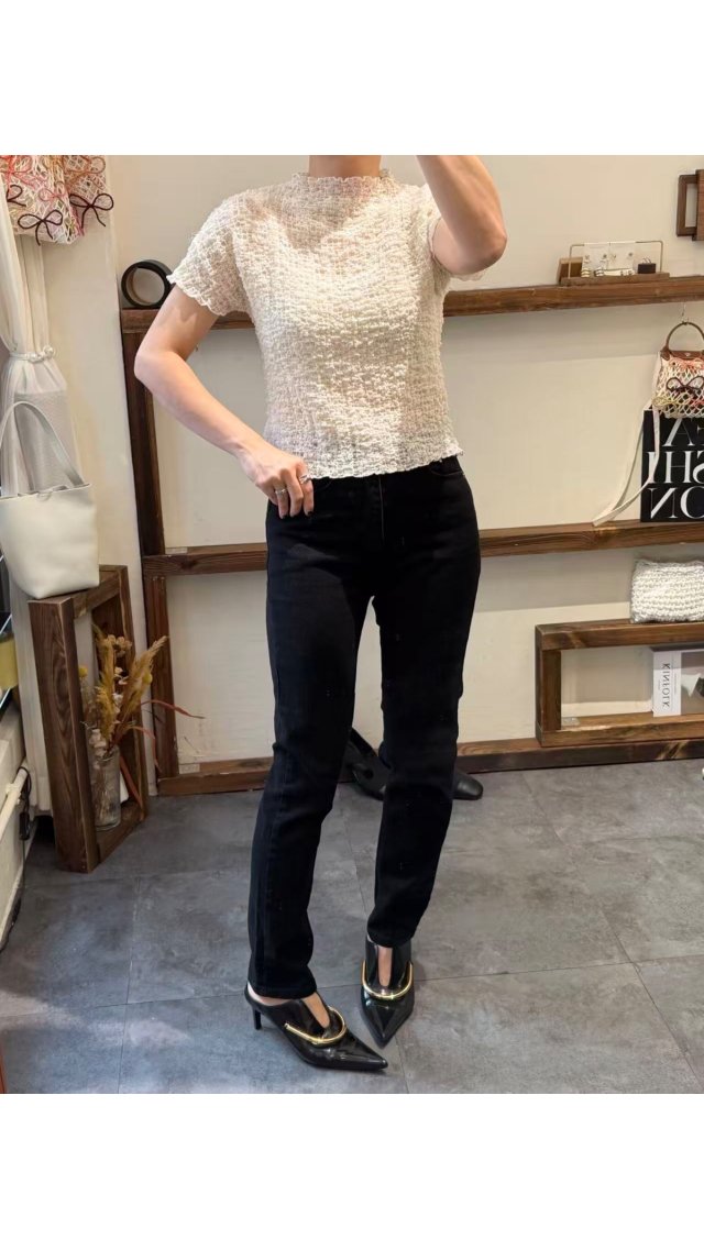 JN60416001 身直筒九分高腰牛仔褲