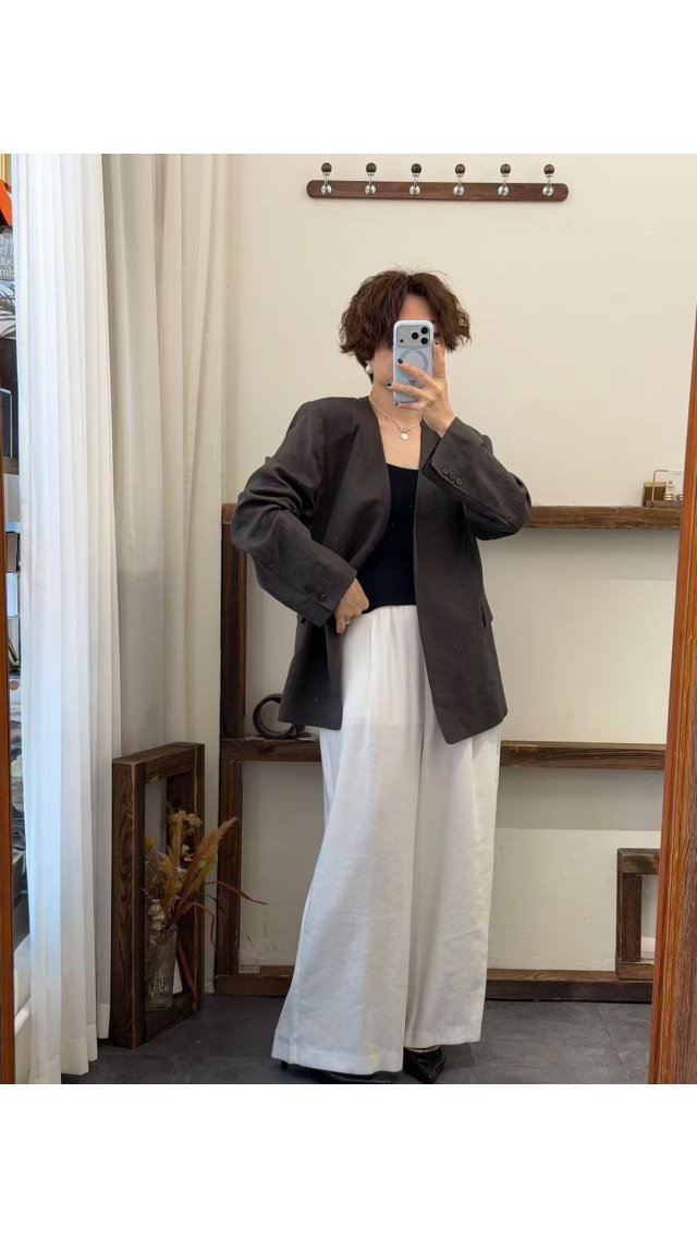 Top60416006 極簡高級全麻面料無領西裝外套