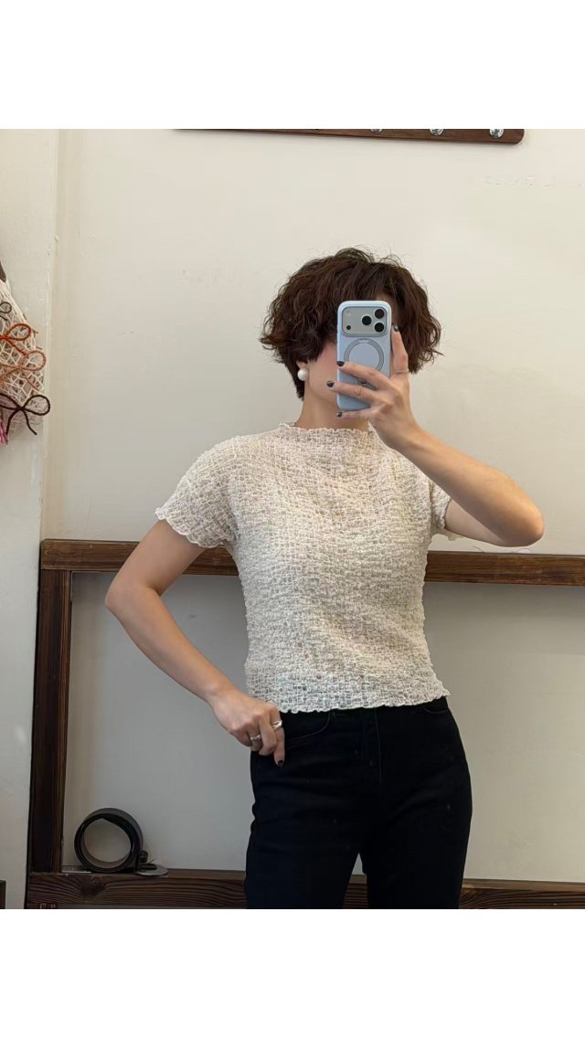 Top60416008 立體皺感木耳邊短袖 T 恤