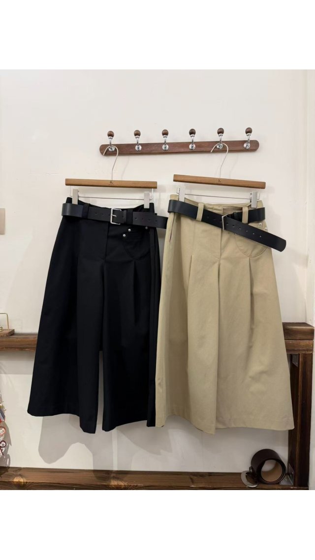 Pt60414010 高級感壓褶寬腰帶闊腿七分褲
