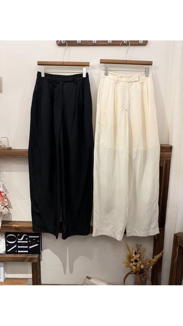 PT60417001 高級垂墜感高腰打褶闊腿褲