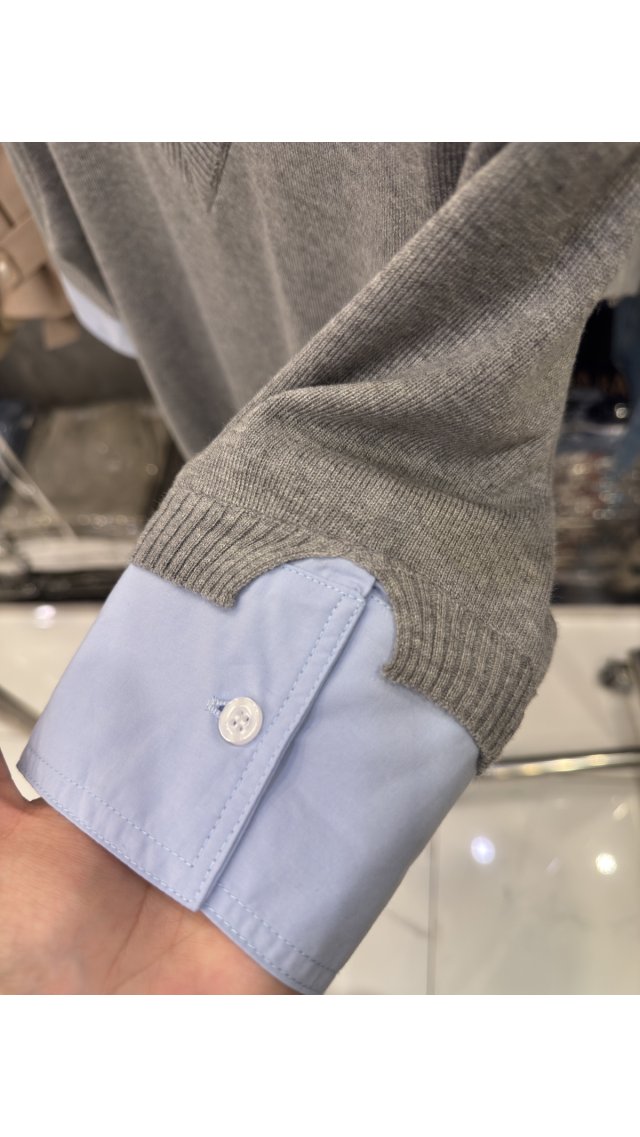 Top60323007灰藍拼色假兩件針織上衣