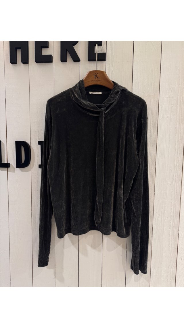 TOP6022504un法式瓢帶領冰花絲絨長袖TOP