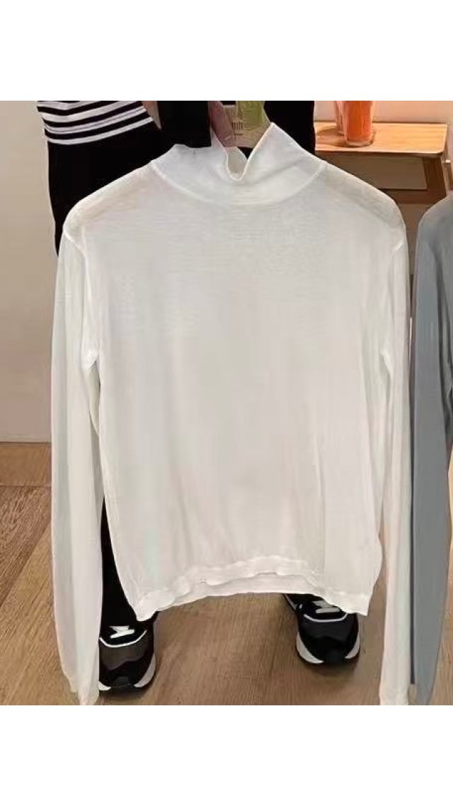 Top6022505la不箍頸高領純棉透紗針織top