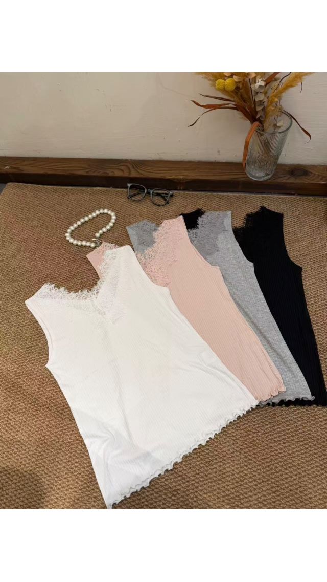 Top60318001 V領彈力舒適Lace坑條棉質背心