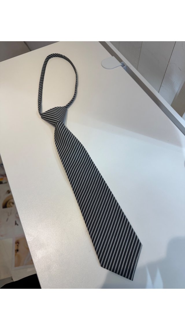 ACC60323002復古學院風灰黑底白條懶人免打領呔