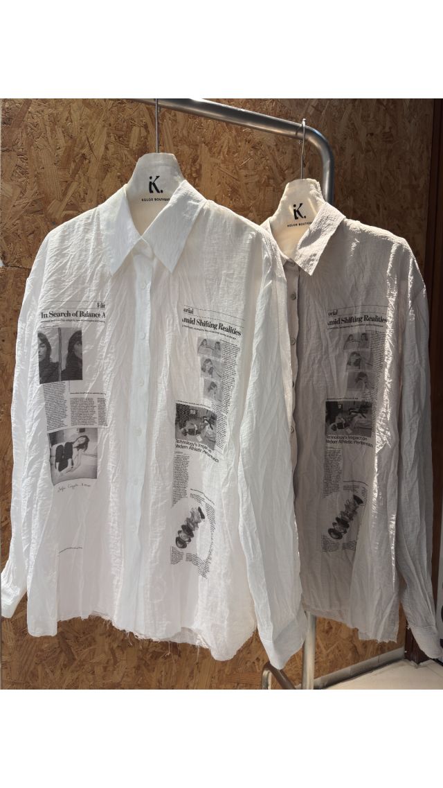 Top60205008報紙印花皺感輕薄長袖襯衫