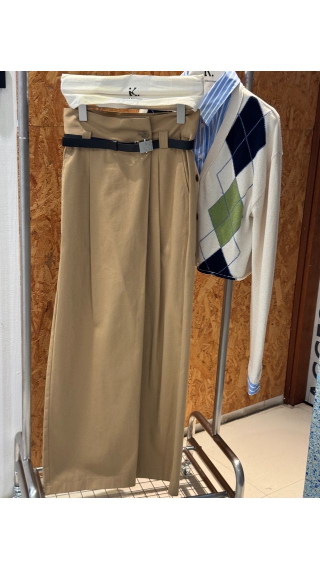 Pt60414010 高級感壓褶寬腰帶闊腿七分褲