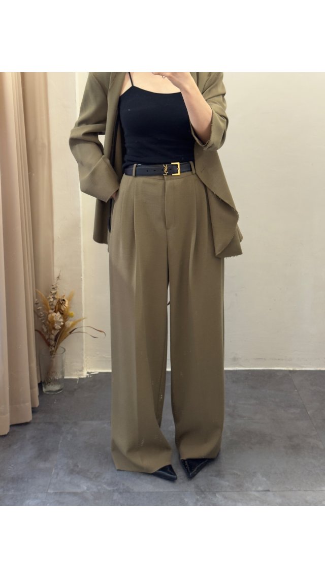 PT60417001 高級垂墜感高腰打褶闊腿褲