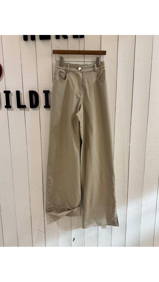 Pt60330005捲邊鉚釘闊腿休閒褲