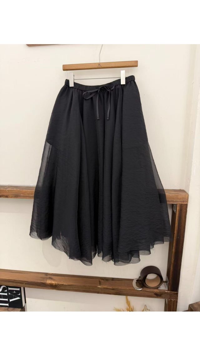 SK60416007 法式浪漫腰封綁帶皺感 A 字半身裙