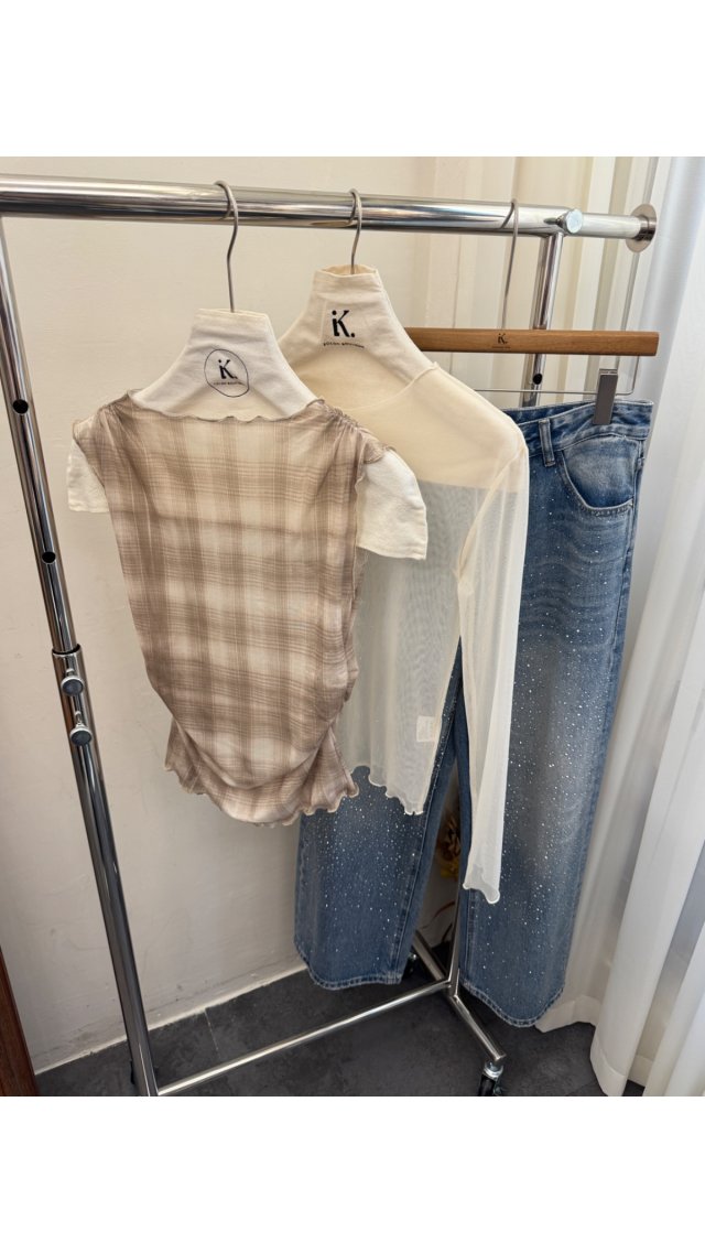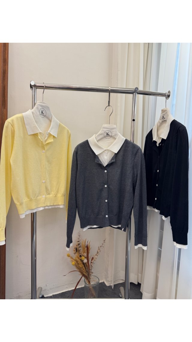 Top60322004 柔軟坑條長袖Polo領短款上衣