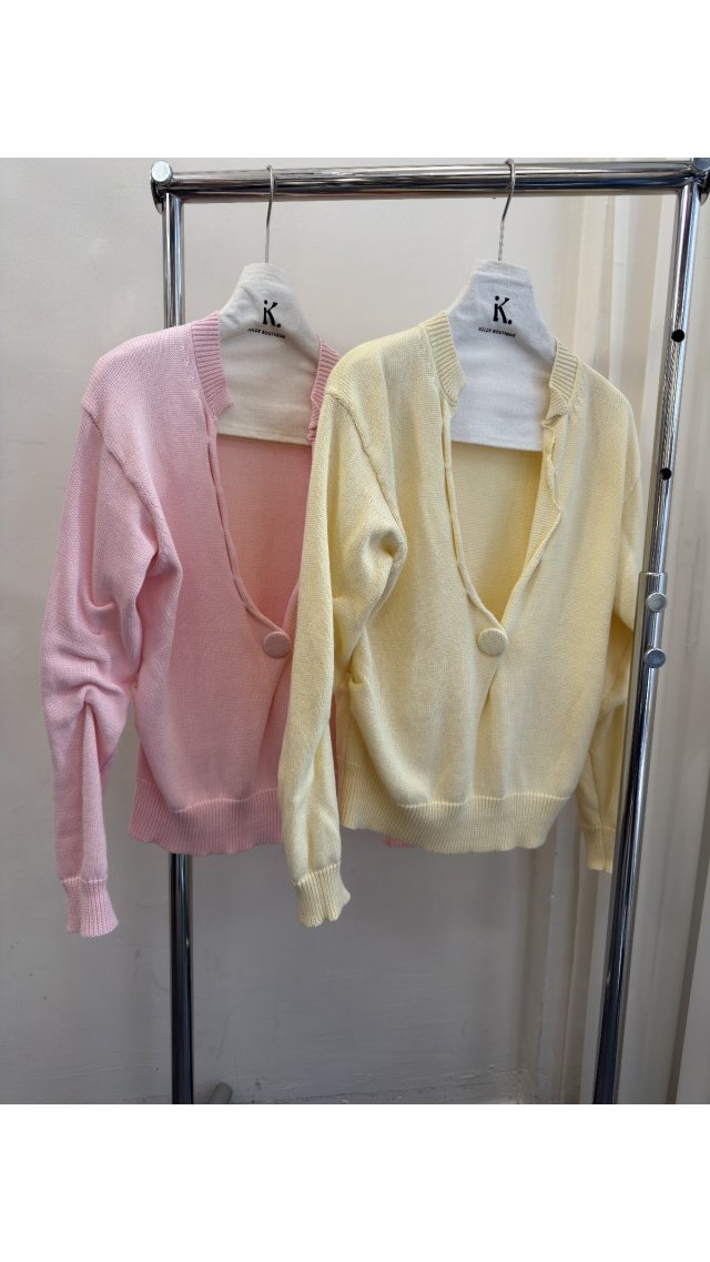 KN60314005不規則100%棉領一粒扣針織TOP,柔軟親膚