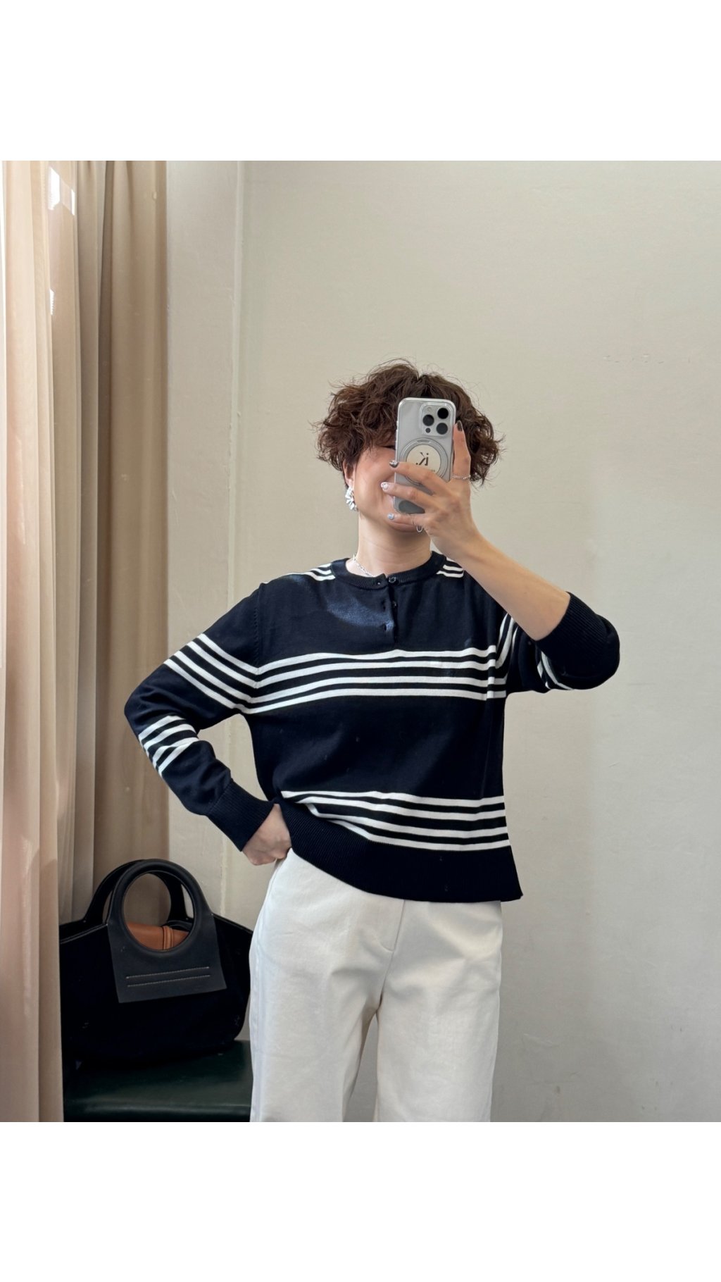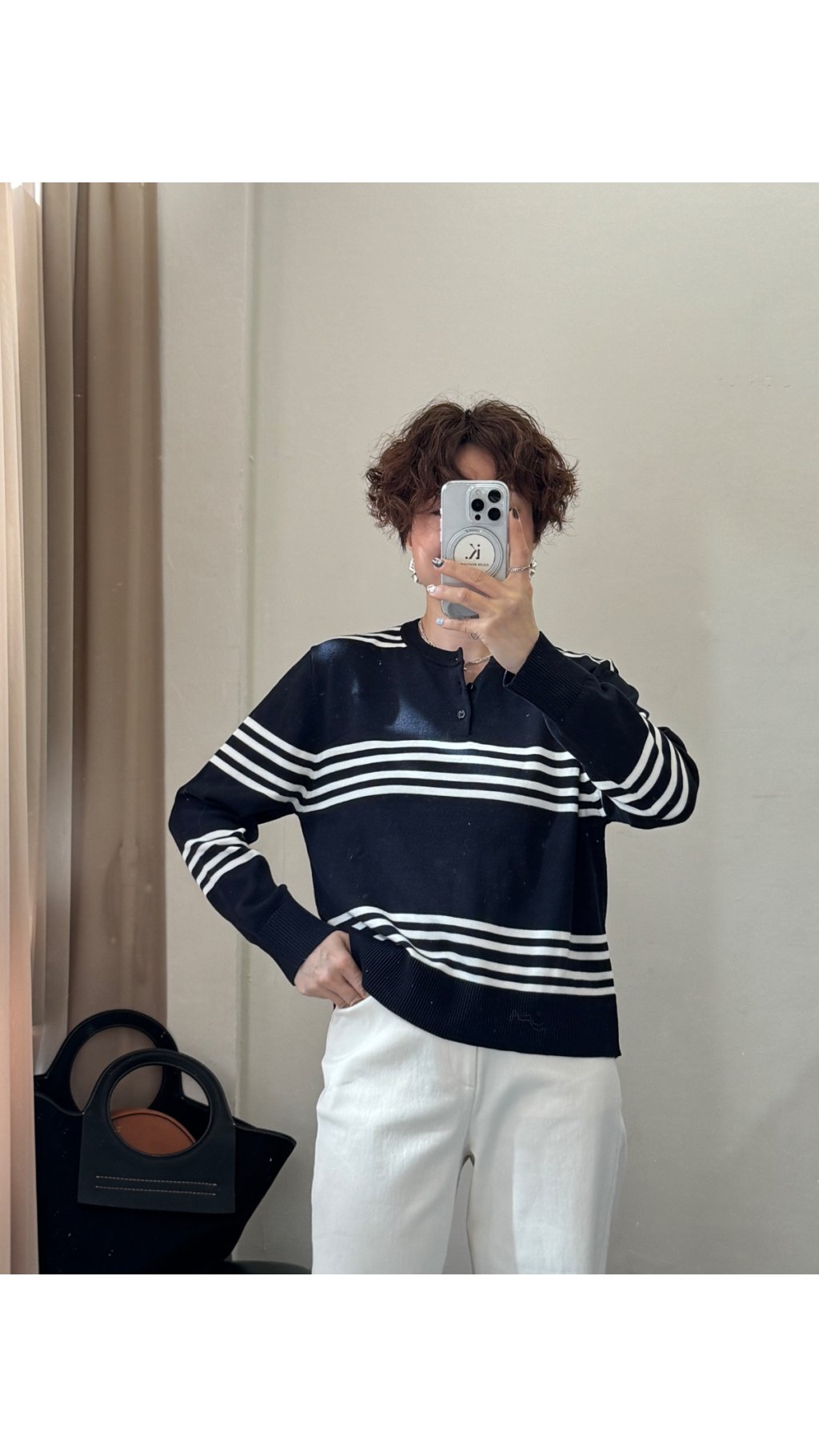 Top6020205 TB風四條杠亨利領長袖針織衫