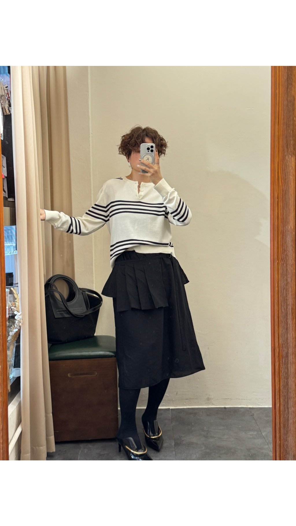 • 亨利領半開扣:圓領+前襟3粒扣設計,比普通圓領多一份隨性與層次感,解開1-2粒扣更顯慵懶氣質,修飾頸部線條。