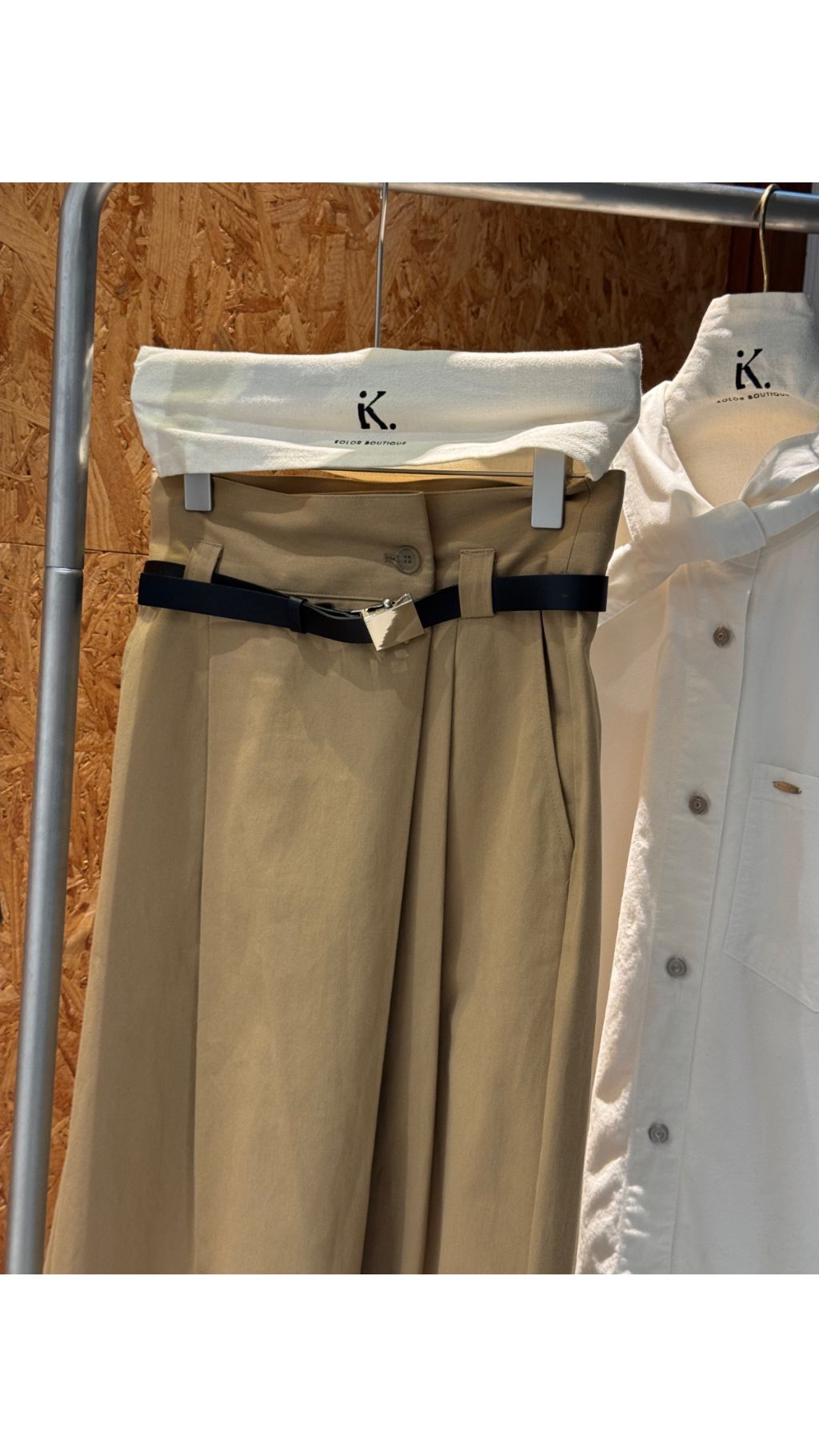 PT60203003卡其色附腰帶褶皺休閒長褲