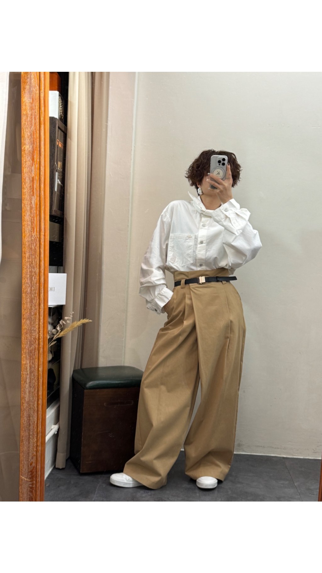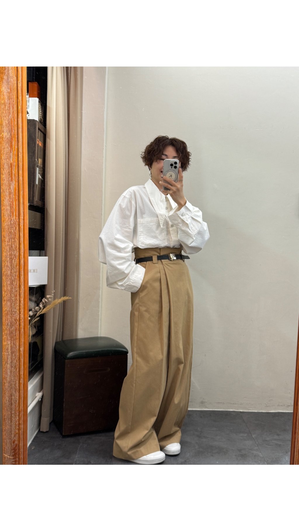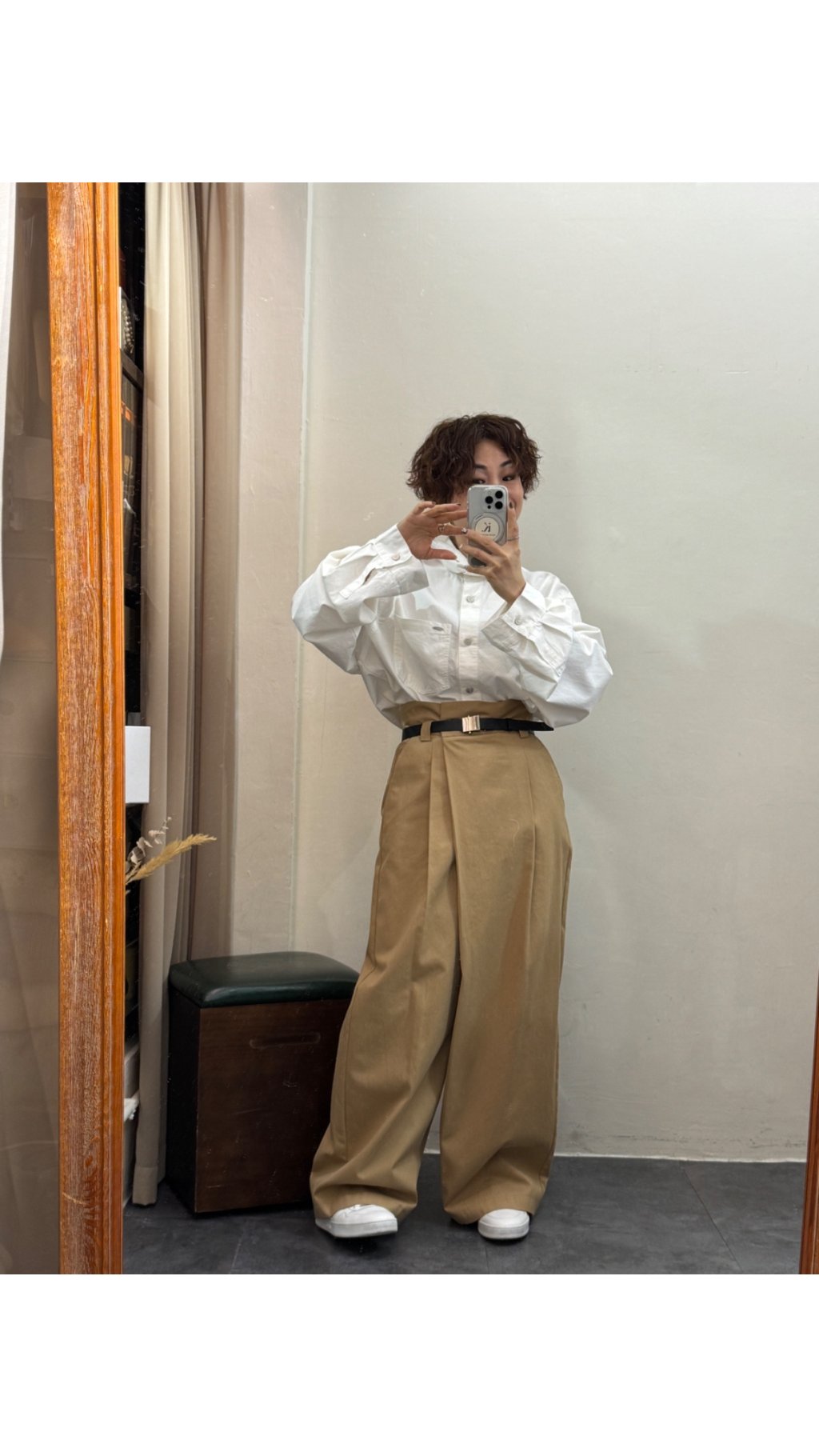 • 超高腰紙袋褲版型:腰頭加高+前片打褶設計,完美收腰顯比例,拉長下半身線條,對假胯寬、大腿粗的身形極度友好。