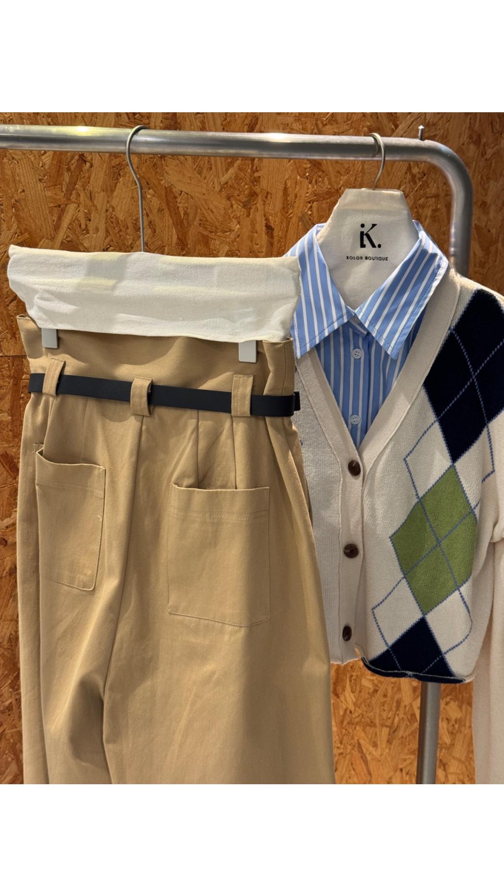 • 附贈同色皮帶:腰頭附黑色皮帶與金屬扣,可自由調節腰圍,強化高腰比例,解鎖「紙袋褲」的時尚造型,無需額外搭配腰帶。